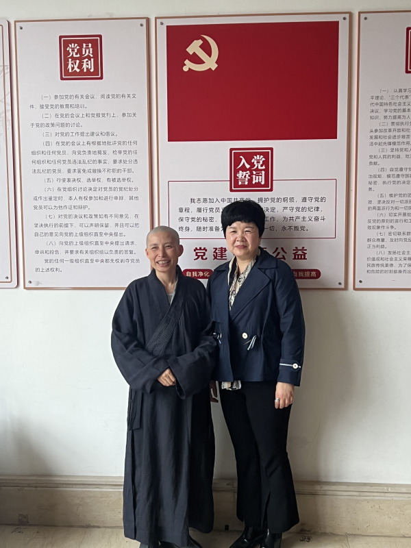 上海福壽園公益發(fā)展基金會(huì)安寧療護(hù)負(fù)責(zé)人楊俊俠(右)走訪福建省愛和生命關(guān)懷公益協(xié)會(huì)名譽(yù)會(huì)長(zhǎng)釋圣如(左)